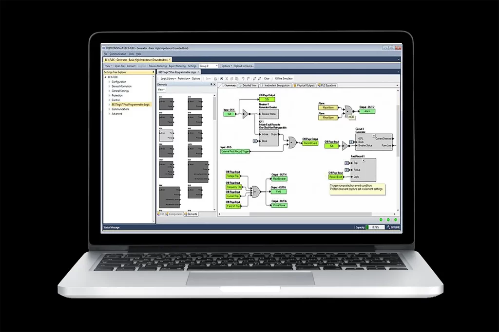 The BE1-FLEX challenges the status quo from product selection and specification to commissioning. A simple configuration process ensures you get the features you need without searching through hundreds of part numbers and spending hours reading specification sheets. The simplicity and flexibility of Basler’s BESTCOMSPlus software with available application templates will streamline the setup and programming of your device.