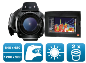 The thermal imager testo 890 offers outstanding image quality for the highest thermographic demands. Thanks to the high-quality infrared measurement system with a 640 x 480-pixel detector, thermal images can be recorded in megapixel quality (1290 x 960) using the SuperResolution technology. This means that even the smallest measurement objects such as electronic components or far distant measurement objects, e.g. on industrial plants, can be safely recorded thermographically in best image quality and high resolution. Even thermal processes can be precisely analyzed over time using the fully radiometric video measurement: all measurement points of the thermal image are available, accurate to the pixel, at all times.